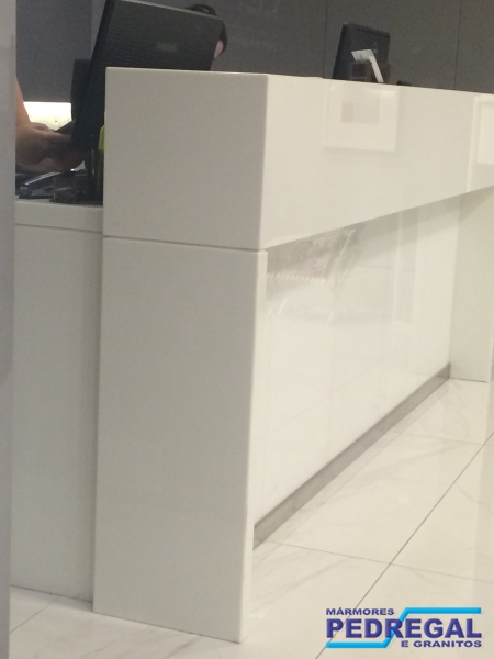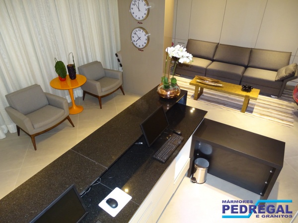 Balcão em Preto Absoluto com acabamento em 1/2 esquadria para a recepção do Hotel Bristol Lapa