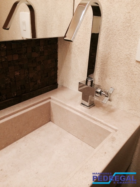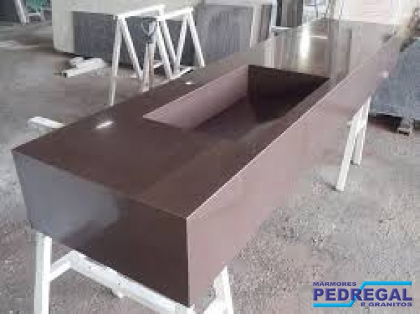 Balcão em Marrom Absoluto com com dois apoios e acabamento em 1/2 esquadria