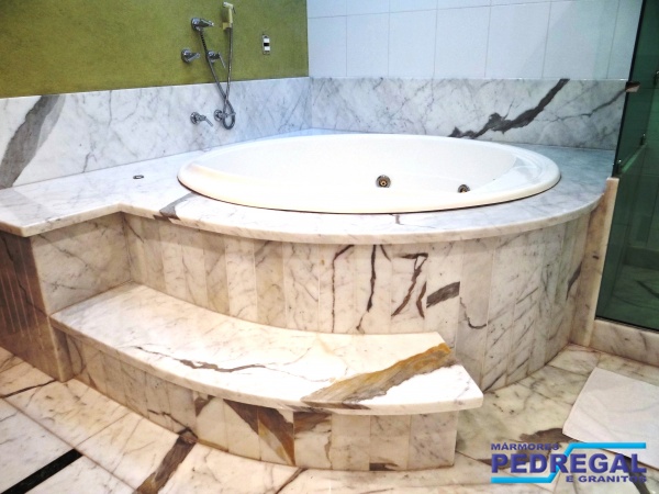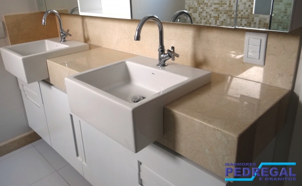 Bancada em Mámore Crema Marfil - acabamento em 1/2 esquadria